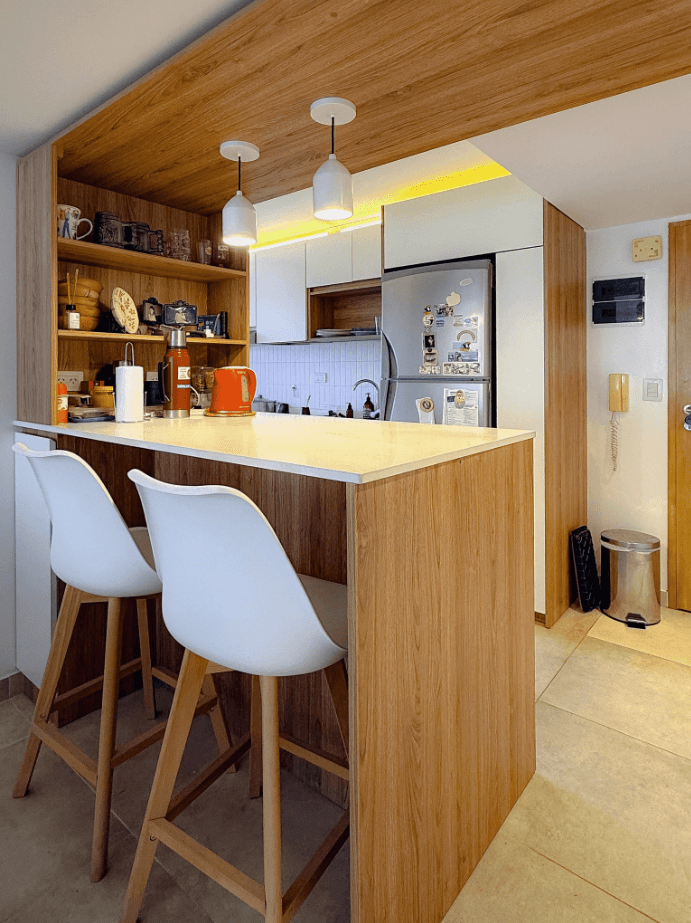 El espacio es absolutamante diferente para bien, tanto en su estética como en la funcionalidad. Nos encanta, amamos nuestro hogar! Nos gustó mucho la forma prolija y cuidadosa de trabajo empleada por tu equipo.